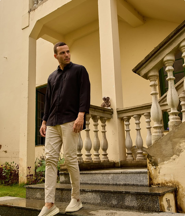 produtos de alta qualidade, com especialização em artigos casuais, em especial o linho, que se tornou um dos pilares da nossa identidade. Esse cuidado em cada detalhe nos permitiu construir um portfólio reconhecido nacional e internacionalmente.